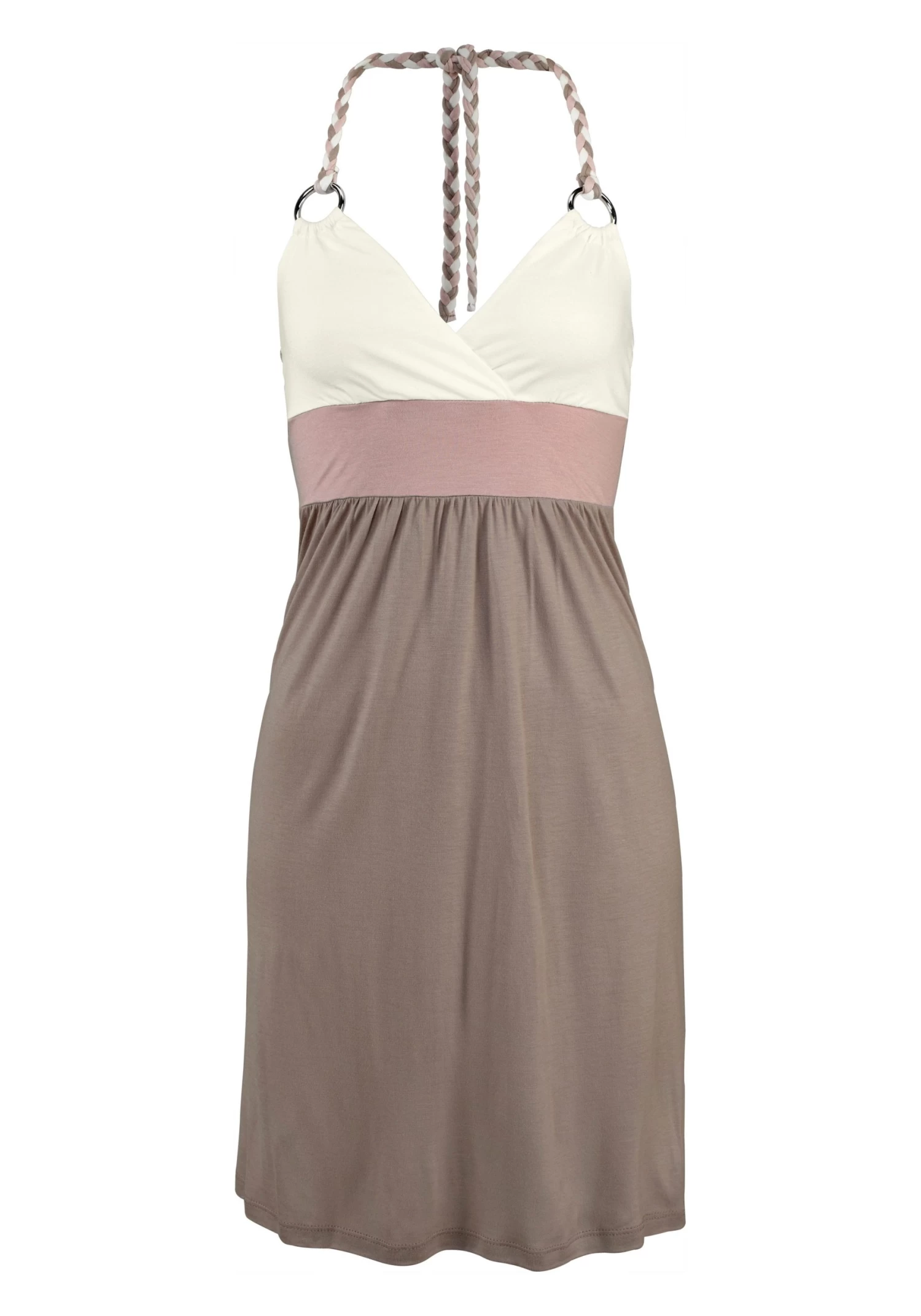 In aantrekkelijke look met gevlochten halterbandjes.<br><br>Lengte ca. 86 cm.<br><br>Prettig lichte kwaliteit van pure viscose.