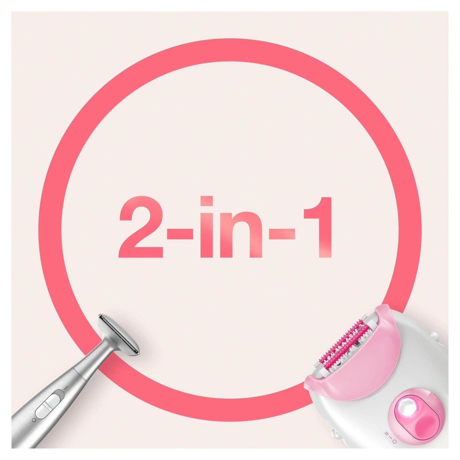 | Leveringssamenstelling | Epilator, Massagerollers-opzetstuk, Bikinilijn-trimmer, Schoonmaakborstel, Oplader |
