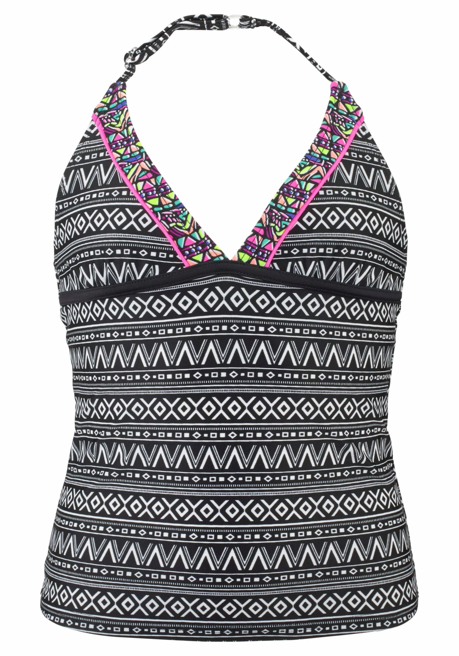 In coole etno-look. In de nek verstelbare bandjes. <br><br>Van 80% polyamide, 20% Elastan (Xtra Life Lycra®). Voering: 100% polyester.