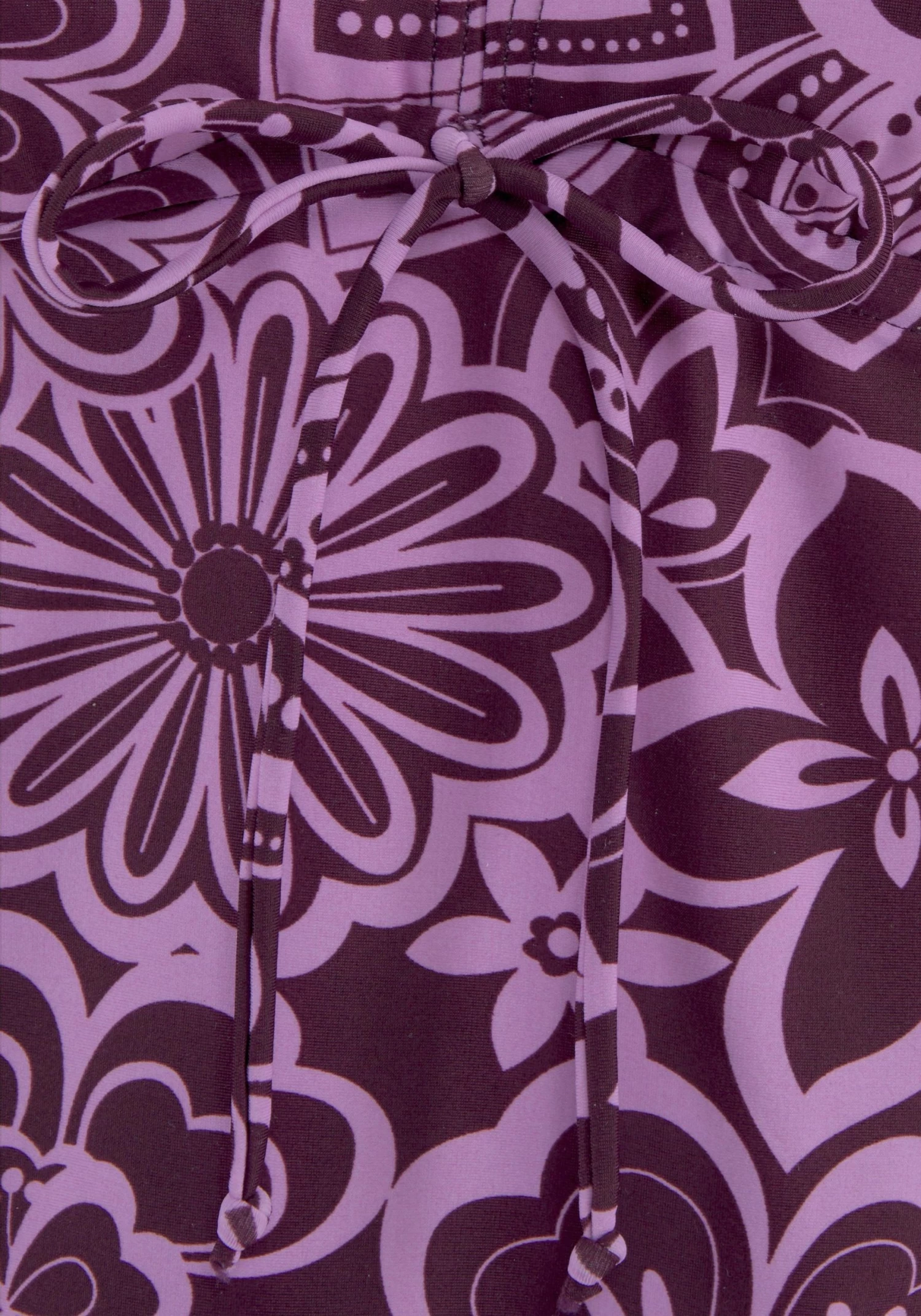 Met mooi bloemmotief. Verstelbare bandjes. Top in modellerend A-model: sluit niet strak aan en verbergt de buik. Gevoerd broekje.<br><br>Van 82% polyamide, 18% Elastan.
