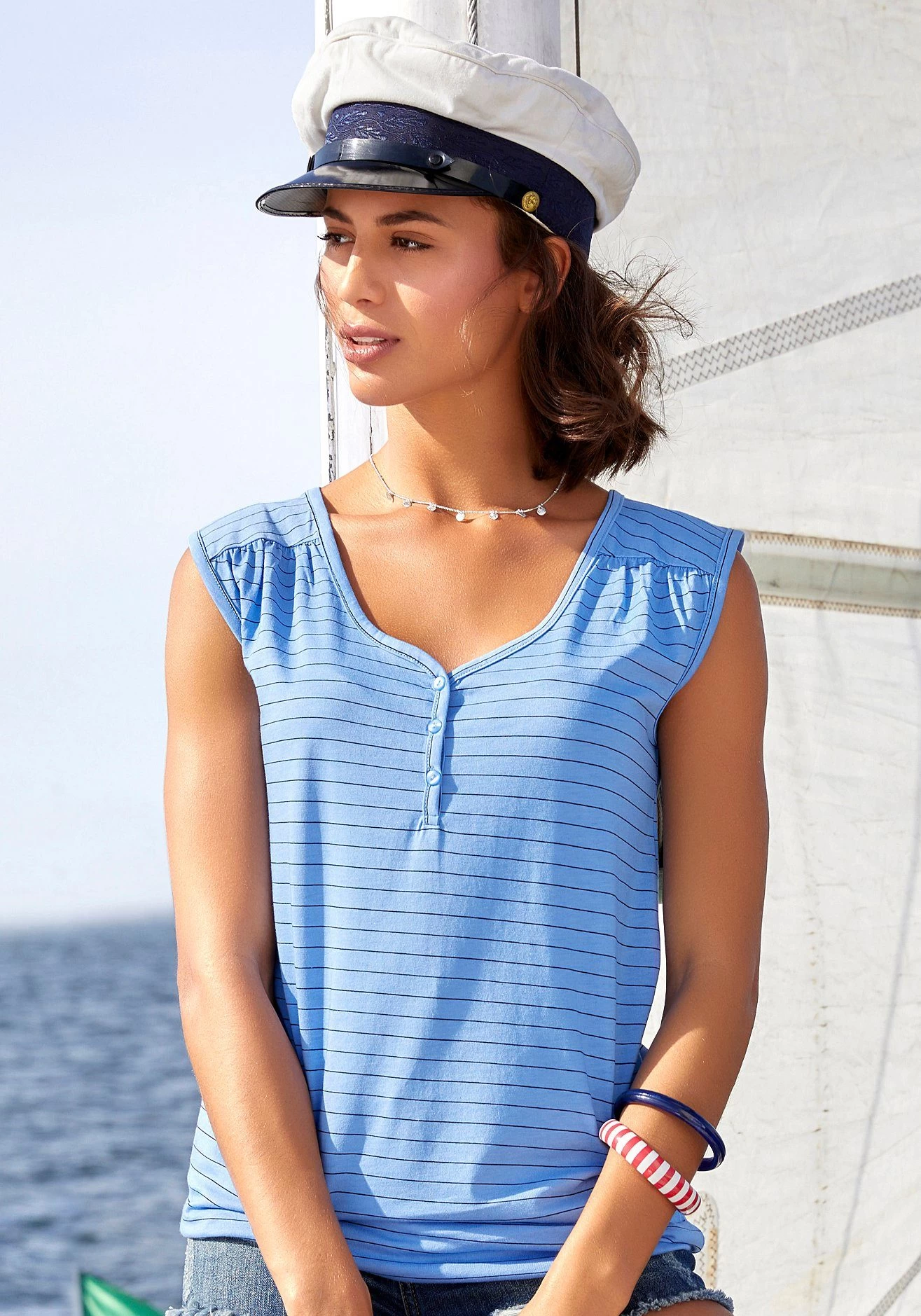 H.I.S Tanktop Met Knoopsluiting En Kleine Plooi (Set Van 2)