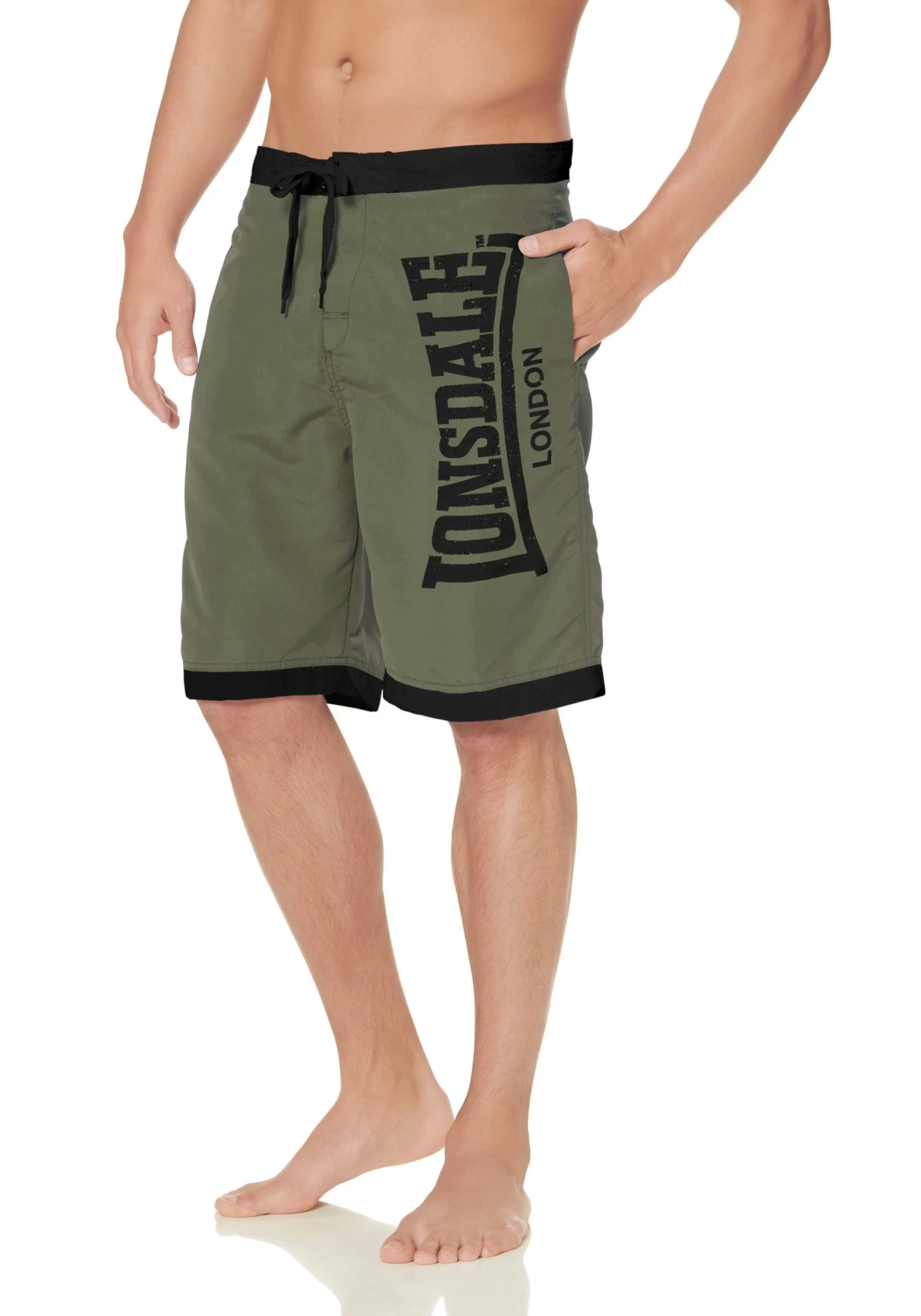 Van LONSDALE. Short Beach Short CLENNEL. Met grote labelprint en contrastdetails. Comfortband met klittenbandsluiting en rijgkoord. Steekzakken opzij. Ingewerkte meshslip. Sneldrogende kwaliteit. <br><br><ul><li>Onderhoudsadvies: machinewas</li><li>Bijzondere kenmerken: meshslip</li><li>Pasvorm: prettig</li><li>Materiaalsamenstelling korte broek: buitenkant van 100% polyester</li></ul>