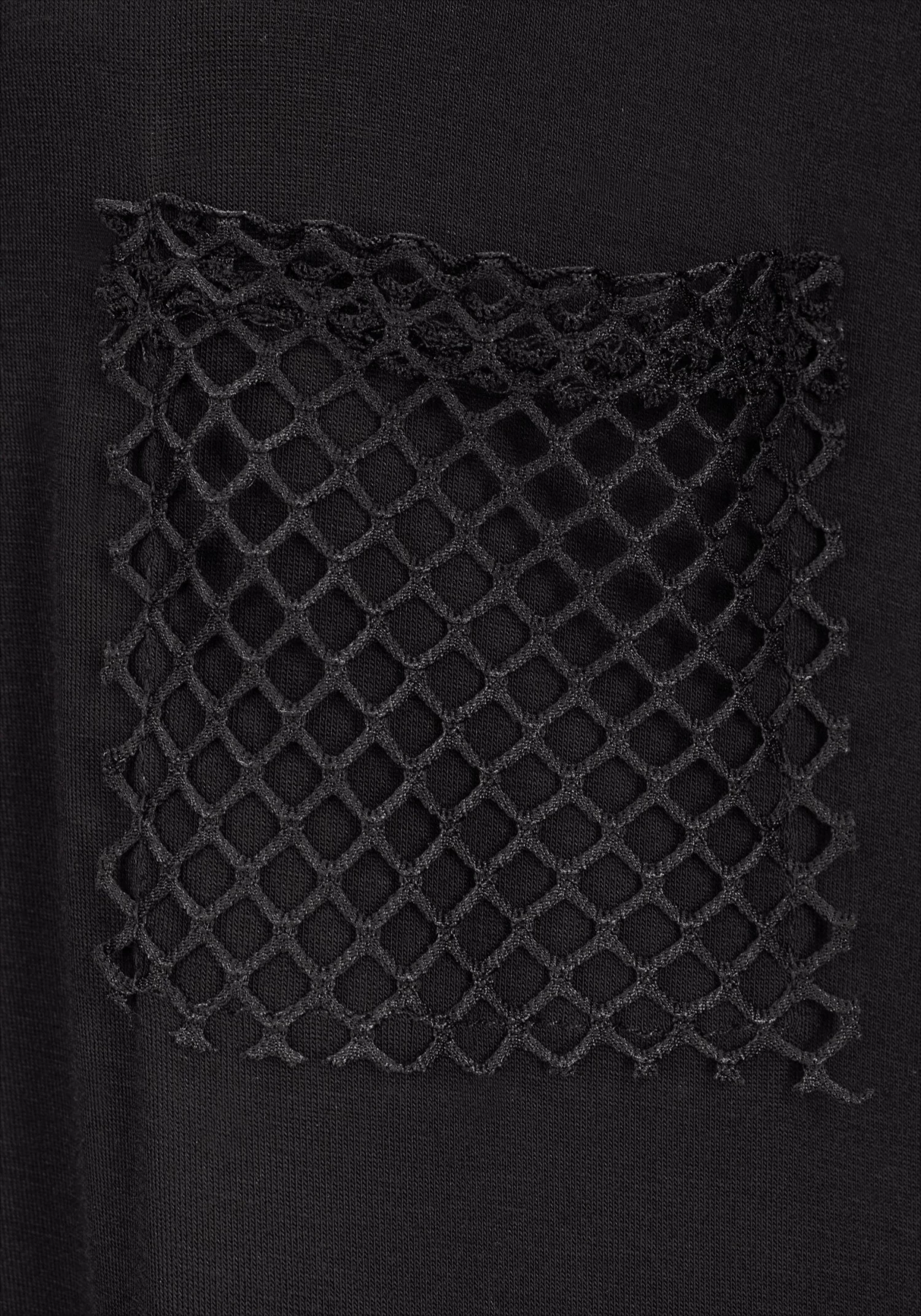 Mesh-inzetten aan de mouwen en onderlangs. Opgestikte zak van mesh. Lengte ca. 84 cm. <br><br>Van 95% viscose en 5% Elastan.