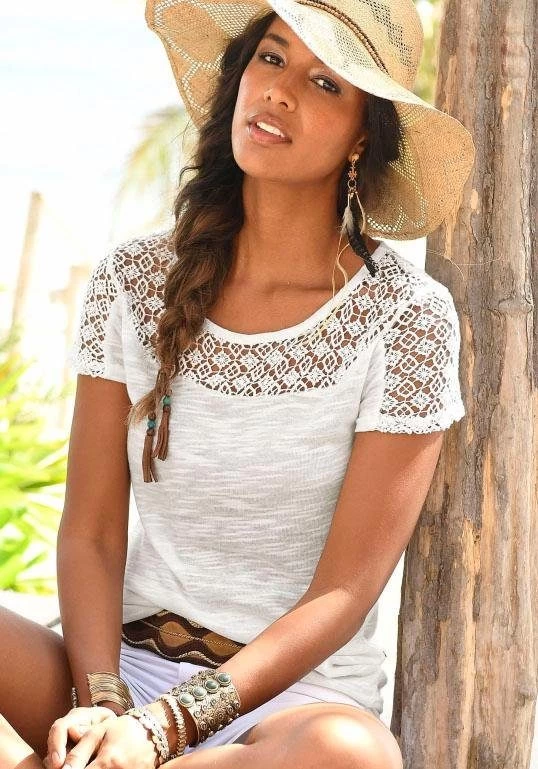 Vivance T-shirt Met Zachte Gehaakte Kant (Set Van 2)